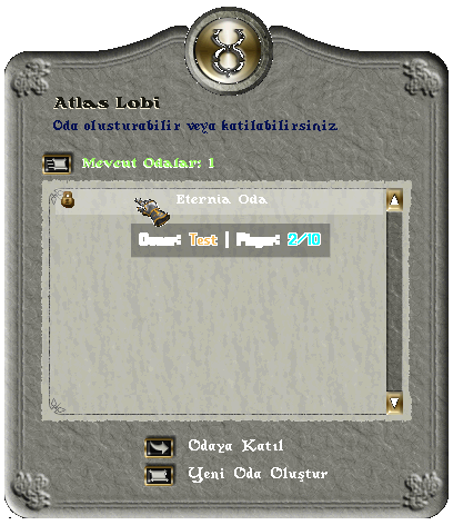 Oda ayarları için ekranın sol üst kısmında bulunan Menu Bar üzerinde bulunan Atlas Login butonuna tıklayabilirsiniz.