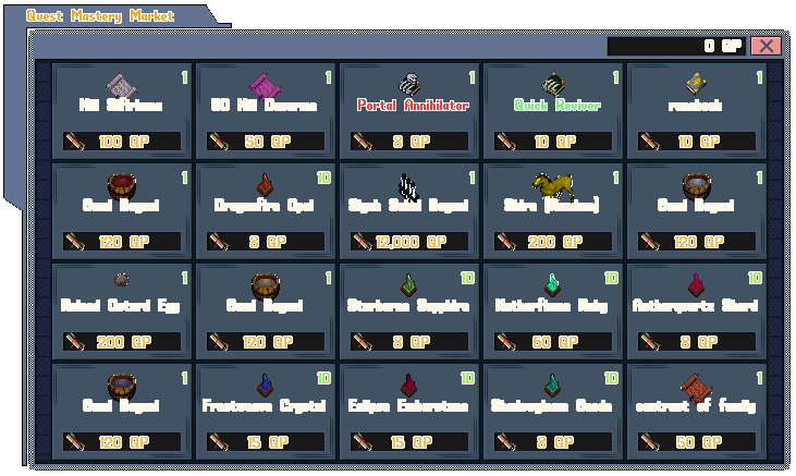 Bu Quest puanları ile Global Quest Market üzerinden hediye alabilirsiniz. Her şehrin marketi ortaktır. İstediğiniz şehirdeki Quester vendorundan markete ulaşabilirsiniz.