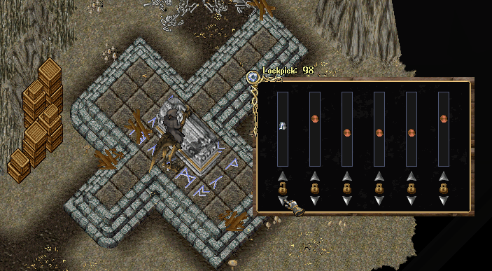 Sarcophagus chestlerin kilit mekanizmaları bazen beklenenden daha karmaşık olabilir. Bu gibi durumlarda kasaları açmaya çalışırken ekranınızda farklı bir kilit mekanizmasıyla karşılacaksınız: